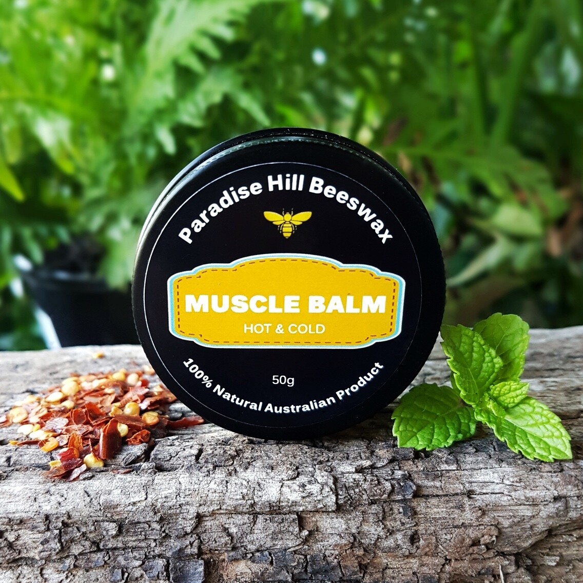 Muscle Balm will help invigorate your skin and relax muscle tension. We use both heating and cooling ingredients in our balm. Heat to help circulation and loosen muscles, while cold helps reduce swelling. Due to the cooling essential oils this balm can be also used to sooth bites and stings. Made with beeswax and organic olive oil infused with cayenne, ginger, peppermint, eucalyptus, clove and camphor essential oils.